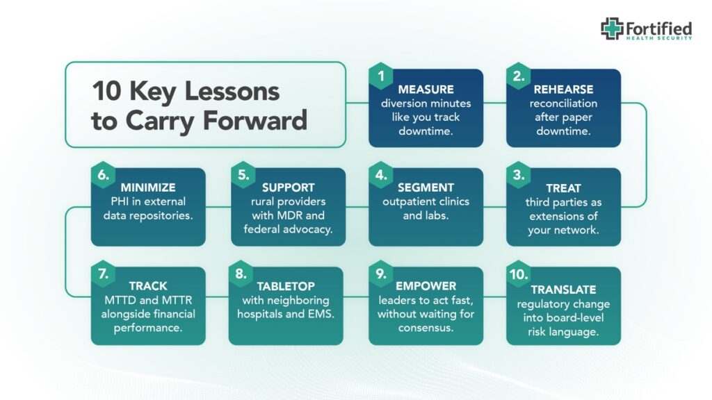 2025 has proven once again that cybersecurity is not just about protecting data; it’s about protecting patients and the resiliency of the patient care continuum. Every diversion, every delay, and every record exposed has real-world consequences.