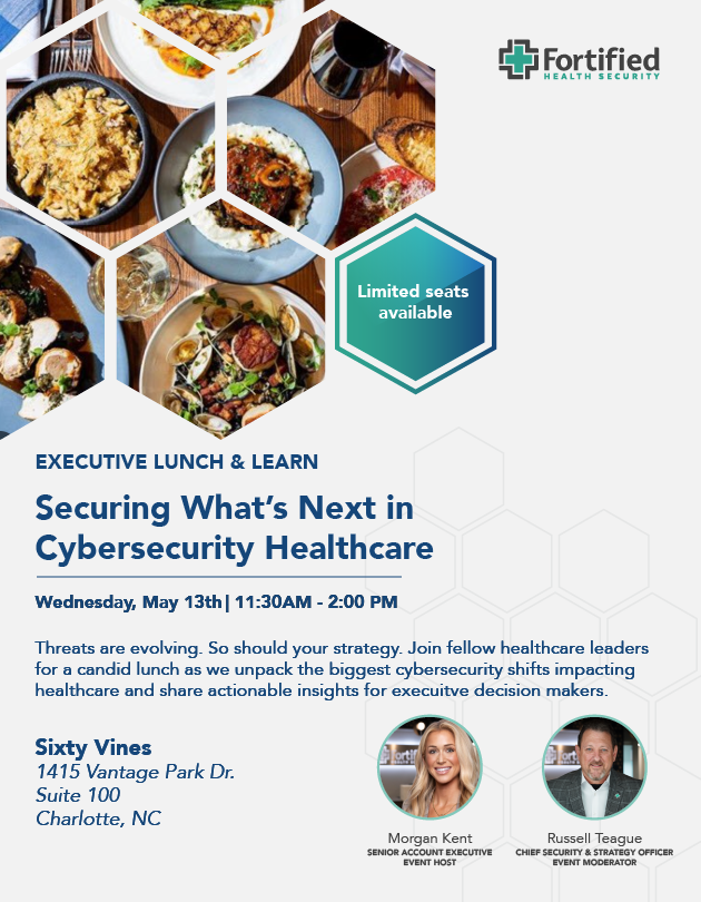 Step away from the daily grind and join fellow healthcare leaders for an interactive Lunch & Learn at Sixty Vines in Charlotte. This event offers a relaxed setting to explore timely topics in healthcare cybersecurity, risk management, and innovation.