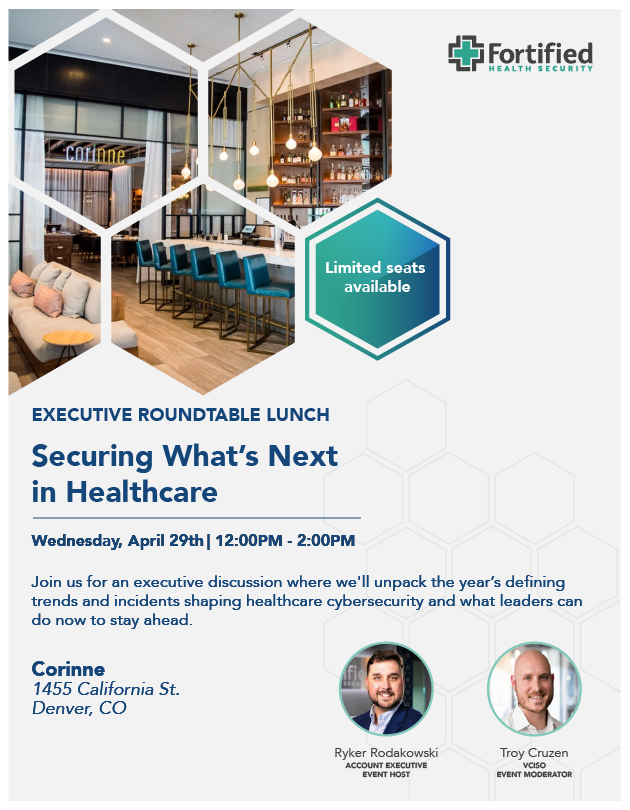 Join us in Denver, Colorado for an executive Roundtable Lunch featuring Troy Cruzen, vCISO, as we unpack the year’s defining trends that are shaping healthcare cybersecurity.