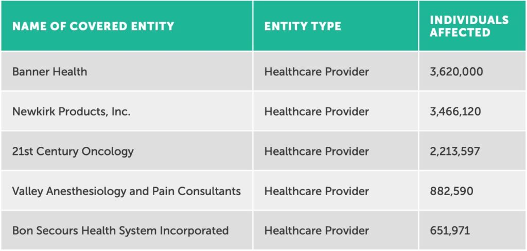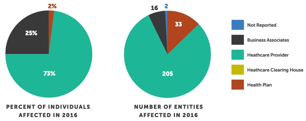 This is according to the “wall of shame” breach data kept by the Office of Civil Rights (OCR) which requires covered entities and business associates to report breaches containing unsecured protected health information affecting 500 or more individuals.