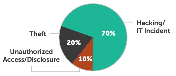 According to data provided by The Office for Civil Rights (OCR), hacking continues to be the biggest cause of breaches for the sixth year in a row. This year, over 40 percent of all breaches were caused by hacking — a 10 percent increase in the number of entities impacted by hacking in 2016. Every year since 2012, when hacking represented only 8 percent of all breaches, it has been a larger cause of breaches than the prior year.