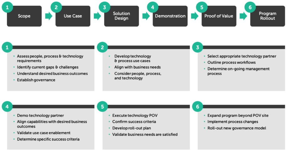 We believe the healthcare industry has an opportunity to tackle the challenge of medical device security. That’s why we’ve created a six-step program that aligns people, process, and technology to solve your business problems and drive successful outcomes surrounding connected medical device security. This program is continuous, actionable, scalable, and focused on reducing surface exposure and overall risk.