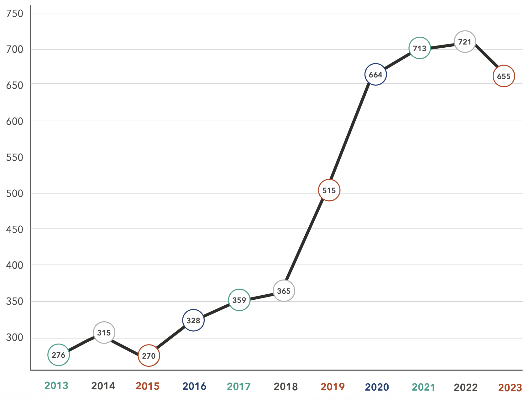 In 2023, we witnessed a significant peak in patient data exposure, surpassing the previous high-water mark of 2015.