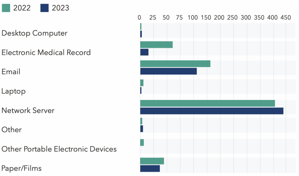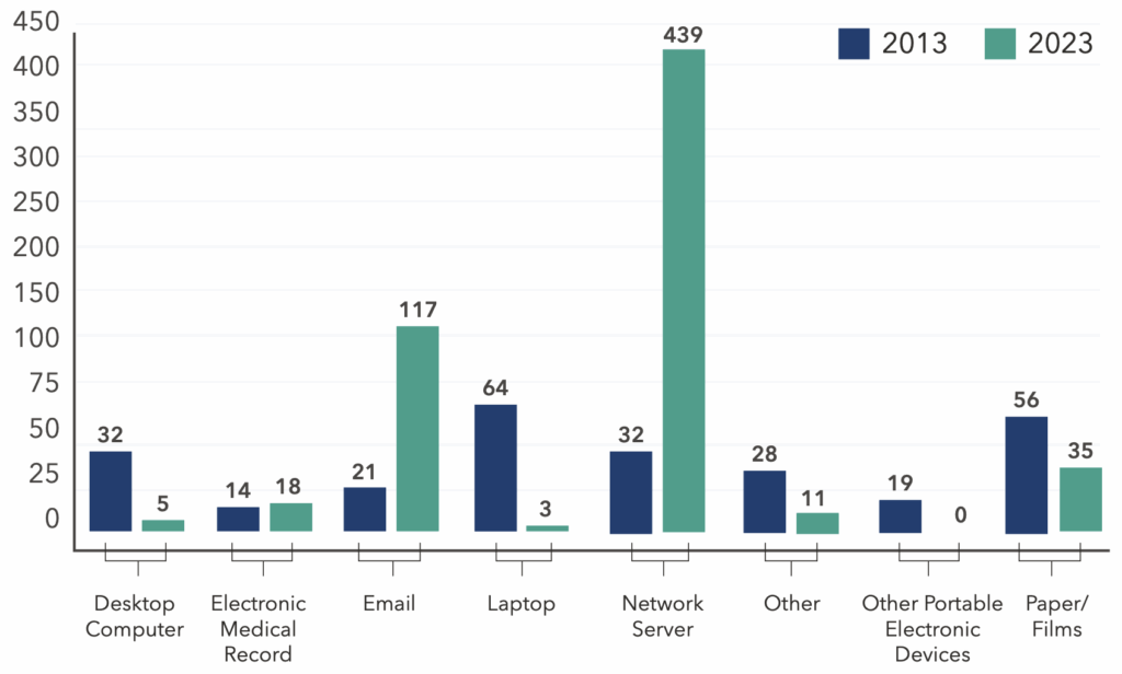 This shift can likely be attributed to the proliferation of electronic patient records and the expanded attack surface that provides more opportunities for malicious actors to target.